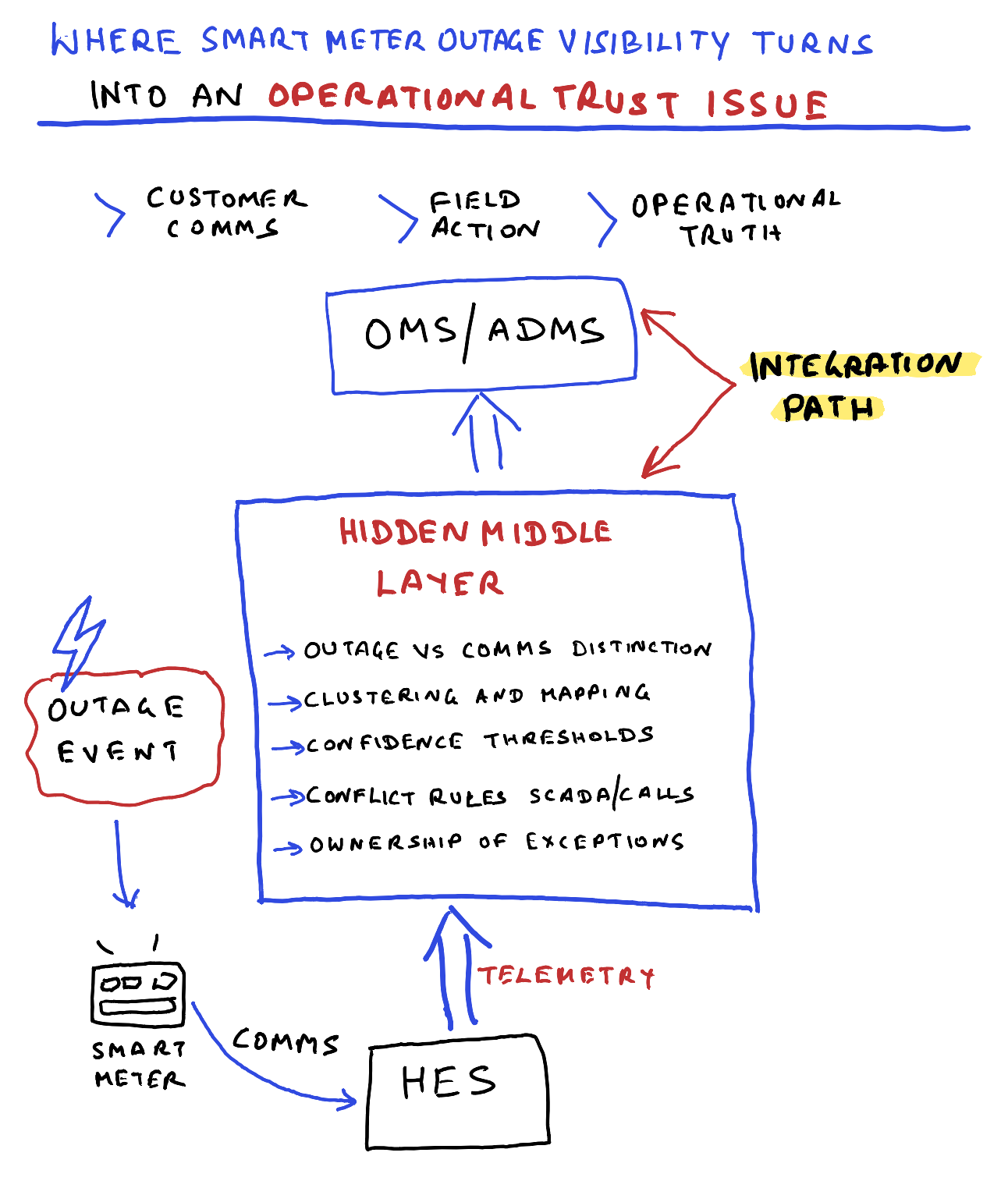The hardest part is not moving meter outage data into OMS. It is deciding when that signal is trusted enough to change operational truth.